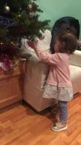 Azt terveztem, hogy berakom az ajándékokat a fa alá és majd onnan osztom szét a gyerekeknek (kereszt gyerekek, rokonok, barátok gyerekeinek), de látva, hogy milyen kis „mindent magamnak akarok” és „mindent megtehetek” volt Emma, így inkább átvittük mindenkinek és csak az ő ajándékát raktam oda.